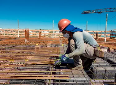 Estrutura metálica, alvenaria, pisos industriais e acabamentos